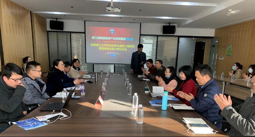 院长余学祥、党委副书记孟静、淮南市数据资源管理局局长韩昆等一行6人,就“政产学研用”平台搭建以及学生就业相关事宜,赴浙江德清地理信息小镇,与德清地理信息科技工作者学会和德清县地理信息企业协会开展对接会,会议在武汉大学技术转移中心大楼605会议室举行,来自德清地理信息小镇的浙江众智绘云信息科技有限责任公司、德清数联空间信息技术有限公司、浙江中海达空间信息技术有限公司、浙江德清知路导航研究院有限公司、浙江中测新图地理信息技术有限公司、浙江正元地理信息有限责任公司等十余家企业参会,会议由教育部高等学校测绘类专业教学指导委员会委员、教育部工程教育认证中心专家委员会委员、中国测绘学会教育工作委员会副主任委员、长三角地理信息创新联盟副秘书长、浙江北斗应用产业协会副会长德清县地理信息科技工作者学会理事长倪涵博士主持。