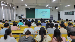 在天工北110教室,开展了2023年研究生招生宣传,副院长赵兴旺、研究生秘书杨震、辅导员韦伟以及约100名2023届本科生参加了宣传会。
