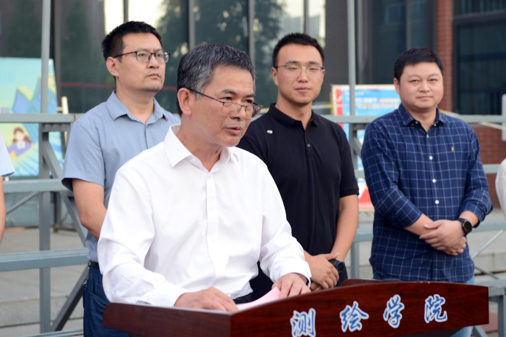 余学祥代表学院向全体新同学介绍了学院自建院以来一路的发展历程,他强调,空测学院的历史,是空测人一步一个脚印走出来的;空测学院的成绩,是空测人踏踏实实干出来的。空测人要读懂空测学院这本书,从厚重的积淀中汲取前行的力量。希望各位同学们接过班旗以后,同心同德,风雨同舟,能和班级同学拧成一股绳,共同进步,共同辉煌,共同走好美好的大学时光!