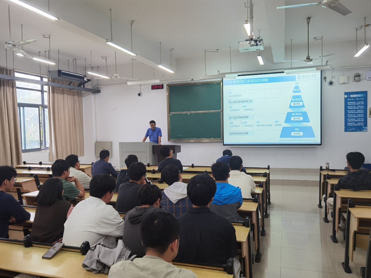 宣讲会上,赵兴旺介绍了学校和学院的基本情况、学科建设、专业设置、师资力量、研究生招生与培养以及奖助体系等方面情况,并就学生关心的考研问题进行了互动交流。本次招生宣传使该校考研学子更加深入清晰地了解了我校测绘学科,对学生选择考研学校、研究方向和拓展学术视野具有积极的引导作用,为学院争取高质量研究生生源打好基础。