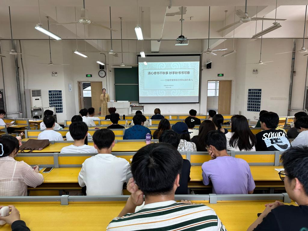 邀请安徽图书馆耿宁研究馆员在明理楼204教室为学院近100名学生带来主题为“清心修书千秋事,妙手补书书可春”的讲座。