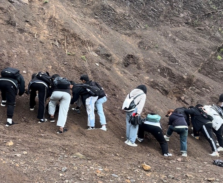 同学们学会了把握自然地理环境的整体性,学会了辩证思维和分析问题的能力,锻炼了同学们的地理野外考察和地理综合思维的能力。同学们在考察实习过程中细致观察、认真记录、积极发问,取得了良好的实习效果。同时,在实习的过程中,师生们同走险峻路,共嚼白馒头,既锻炼了同学们吃苦耐劳的精神,培养了劳动意识。