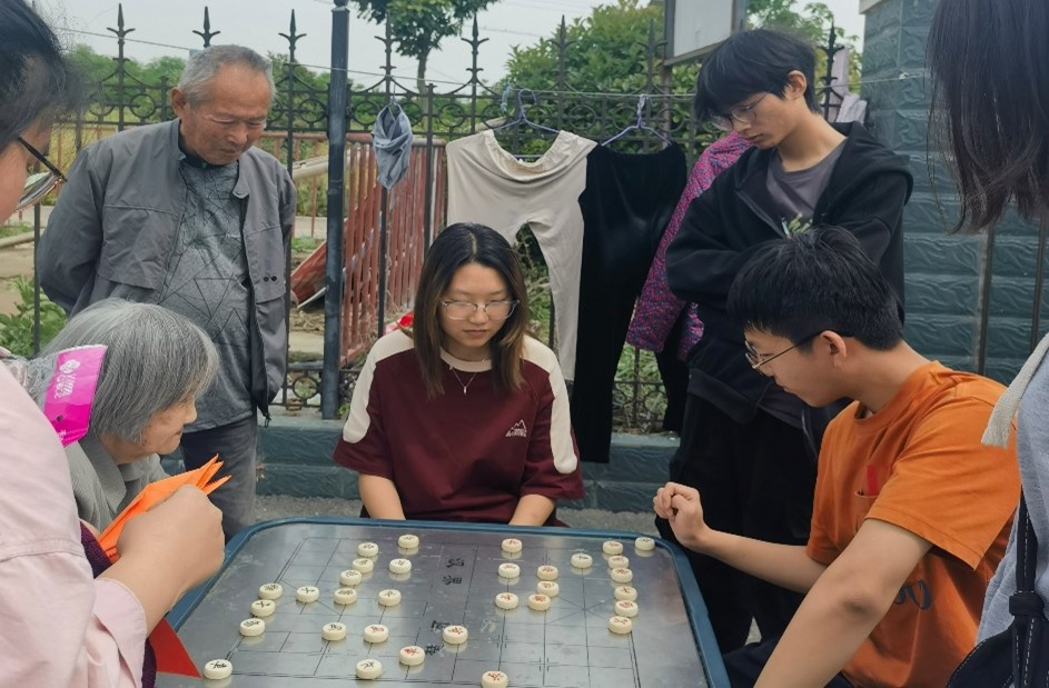 活动现场,大学生们为敬老院的老人们过了集体生日,为每一位老人提供了新的毛巾,并与老人们进行了亲切的交流。他们耐心倾听老人们的故事,分享彼此的生活经验。老人们也观看了大学生们的剪纸、叠纸鹤表演,脸上洋溢着幸福的笑容,在互动交流环节中,大学生们还向老人们学习了下棋。